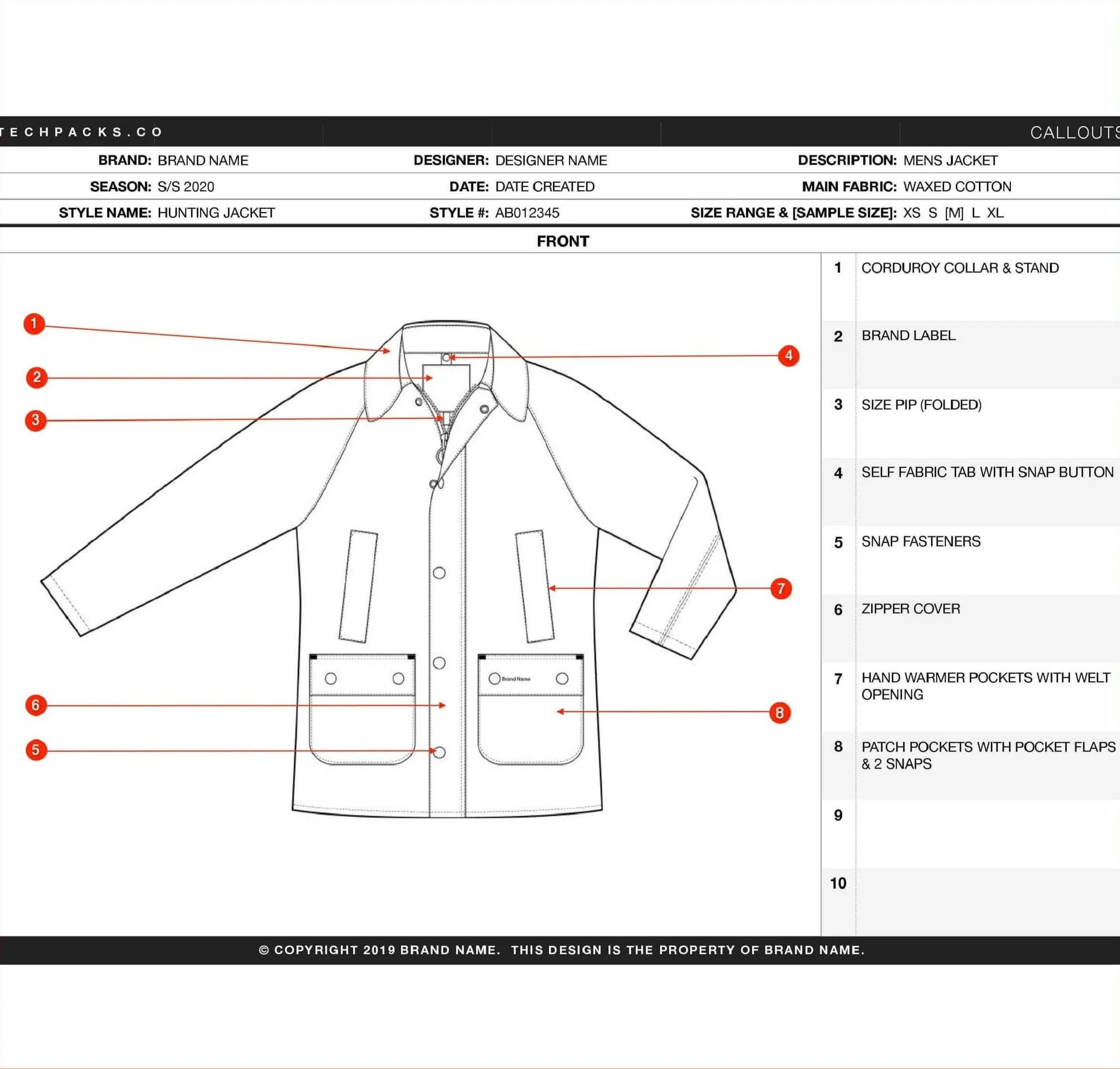 • Learn aTech Pack entails, such as technical sketches, color way sheet, fabric type, measurement specifications, bill of materials, cost sheet, care instructions, and branding sheet.